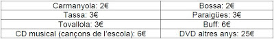 La venda de tiquets la farem a l'escola el dimecres dia 22 i dijous 23