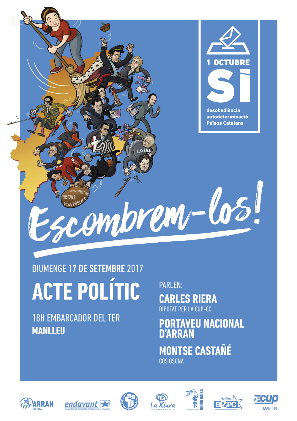 Dins de la campanya “Escombrem-los”, l’Esquerra Independentista de Manlleu organitza un acte polític el proper diumenge, 17 de setembre a les 6 de la tarda a l’Embarcador del Ter de Manlleu.