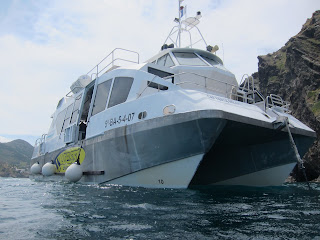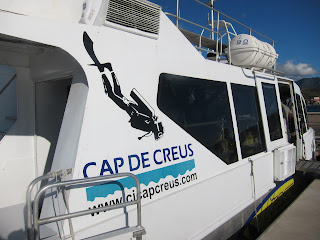 El dissabte de bon matí, en Miquel Vila, del Centre d’Immersió Cap de Creus ve a l’hotel a buscar els equips de submarinisme i, tot seguit, anem a peu cap al port on ja ens espera el catamarà, que compartirem amb un grup nombrós de submarinistes francesos.