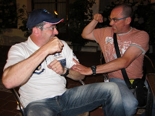 La terrassa de l’hotel és un bon lloc per fer petar la xerrada els vespres després de sopar. Aquest any, la fresqueta i el vent ens han obligat a posar-nos jaquetes.