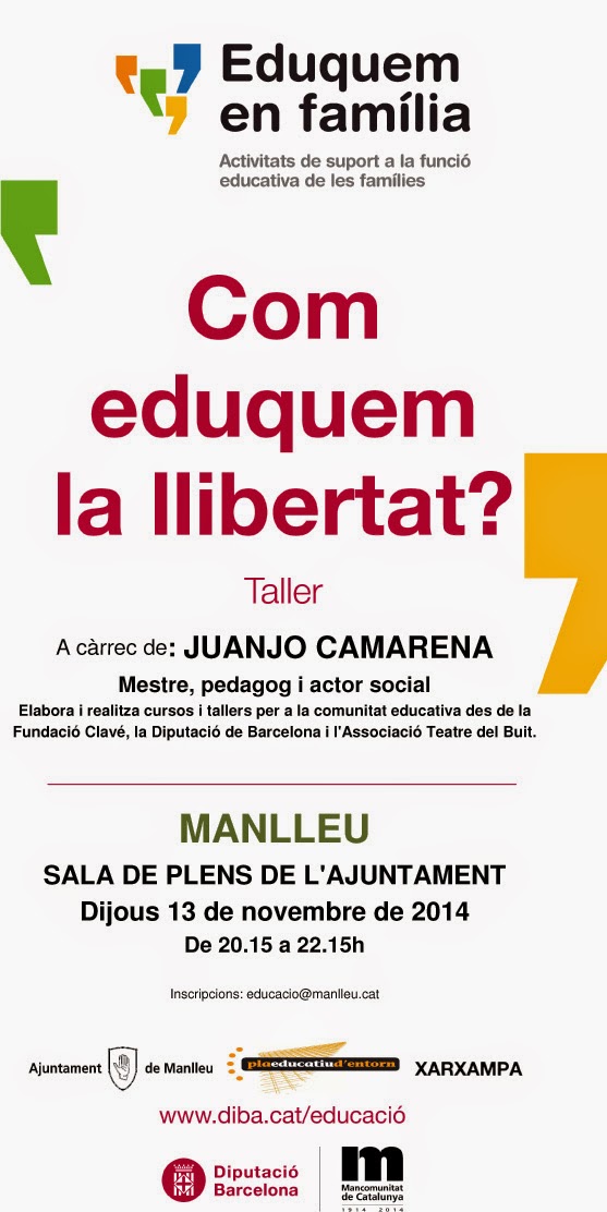 Aquest és el títol del taller, a càrrec de Juanjo Camarena, mestre, pedagog i actor social, que tindrà lloc el dijous, 13 de novembre, a les 20.15 a la Sala de Plens de l’Ajuntament.