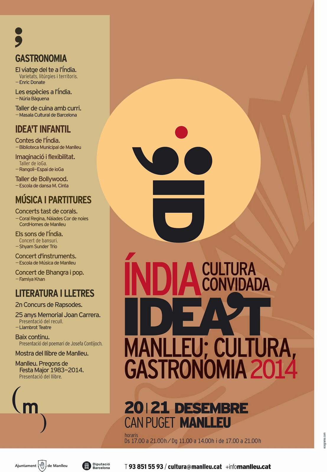 Espiritualitat, colors i diversitat. Activitats culturals i gastronòmiques amb la participació de les entitats i els comerços de Manlleu, l’Escola Municipal de Música i la Biblioteca Municipal de Manlleu.