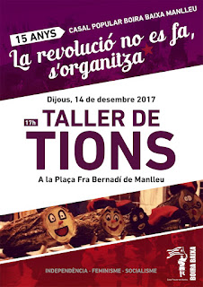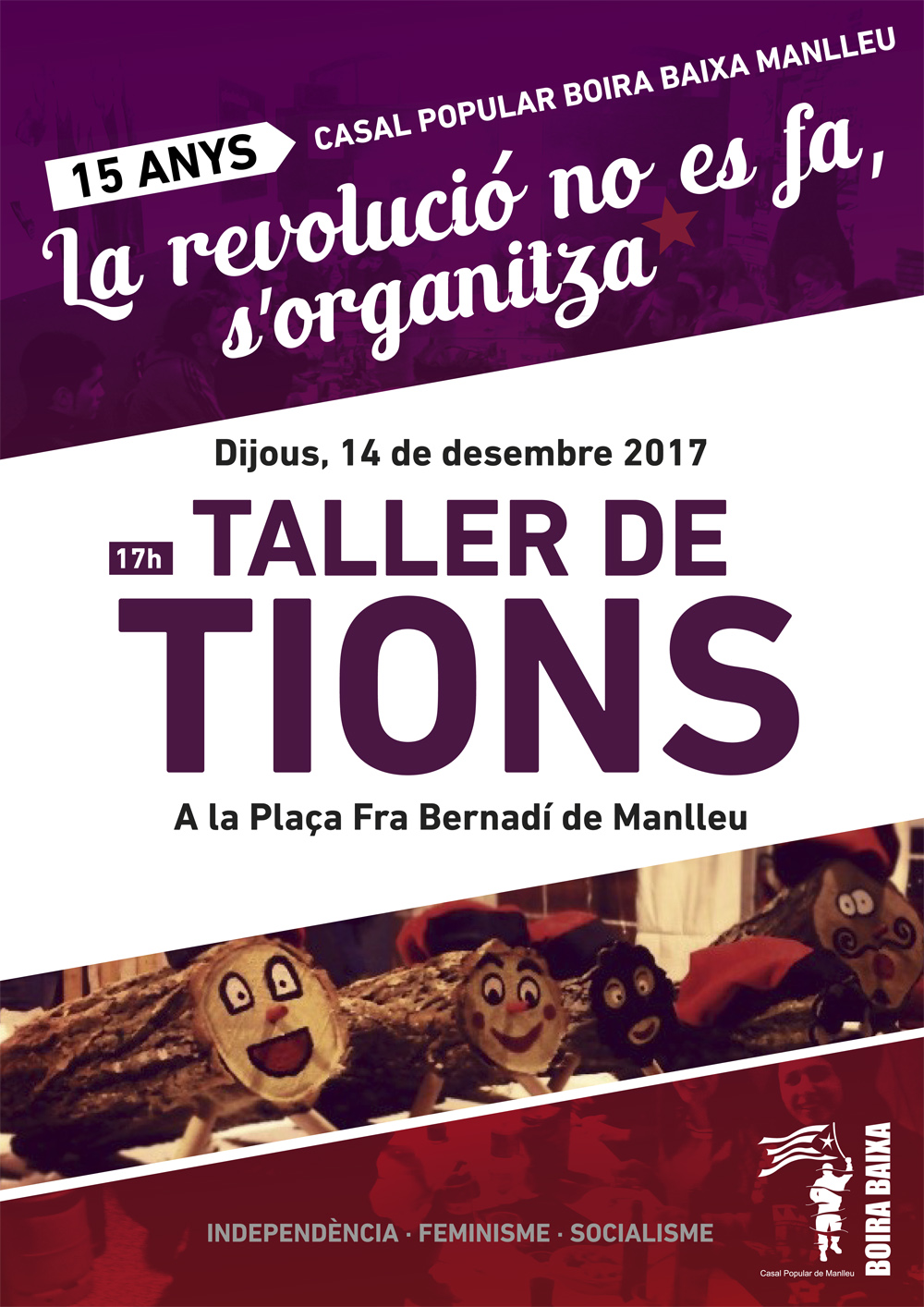 Us esperem aquest dijous 14 de desembre a les 5 de la tarda al tradicional TALLER DE TIONS a la Plaça Fra Bernadí de Manlleu, englobat dins els actes de 15è aniversari del Casal Popular Boira Baixa!