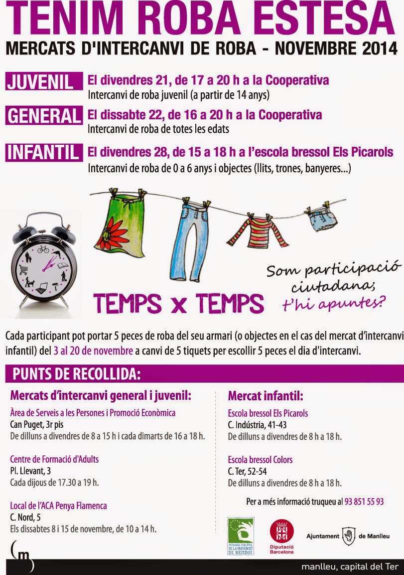 A partir d’aquest dilluns, 3 de novembre, ja es poden portar les peces de roba pel Mercat d’intercanvi, organitzat pel TempsxTemps.