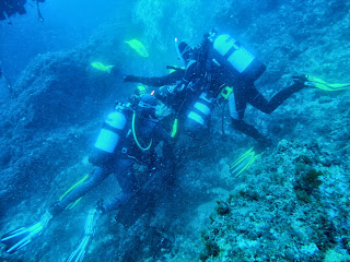 Un cop dins l’aigua, vàrem fer una bona immersió. La temperatura de l’aigua encara és agradable i, tot i que la visibilitat no era extraordinària, era suficient per veure’ns tot el grup.