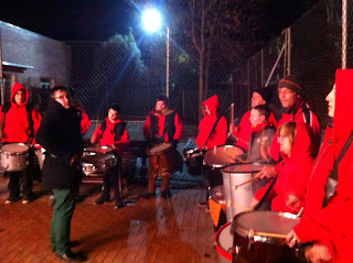 Els tabalers dels diables Serpents de Manlleu participen als actes organitzats a Manlleu per ajudar a recaudar fons per La Marató de TV3 sobre les malalties neurodegeneratives, el diumenge 15 de desembre.