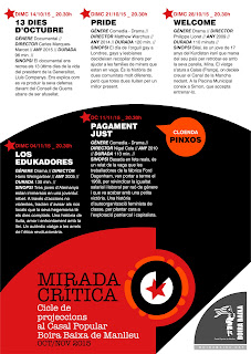 Les properes cinc setmanes tindrà lloc al Casal Popular Boira Baixa de Manlleu, un seguit de projeccions de diferents documentals englobats en el cicle de MIRADA CRÍTICA, una mirada compromesa de la societat.